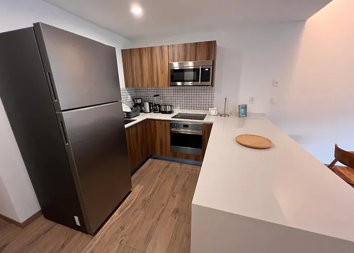 Apartamento En The Leaf, Playacar Playa del Carmen est situé à 6 km du Parc à thème écologique Xcaret et dispose d'une piscine. Le Wi-Fi est disponible pour les besoins professionnels ou de loisirs des clients.